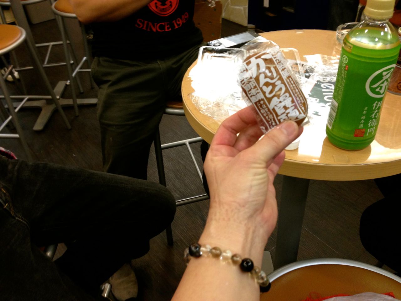 休憩時間中は、リーダーの差し入れ「かりんとうまんじゅう」をみんなで食べる。