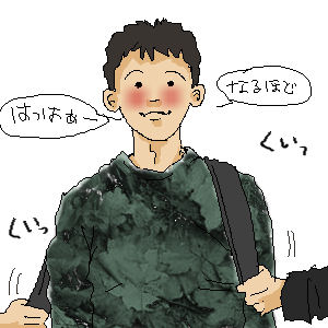 休憩中、メタル好きなキカチュウとリーダーが、ジャーマンメタルの話で盛り上がる。