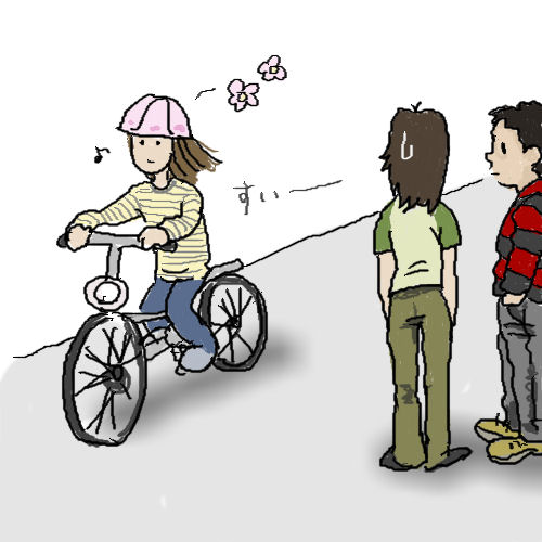 すると突然A-ZOが、前からやってきた自転車を見て、