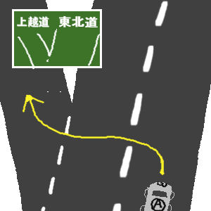 後で聞いた話だが、途中、「左方面が上越道、右方面が東北道」、という岐路があり、