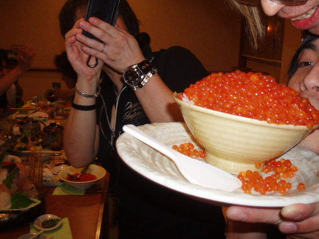 そして、ものすごいいくらの量の「いくら丼」、、、をすする人、、、を撮るリーダー。