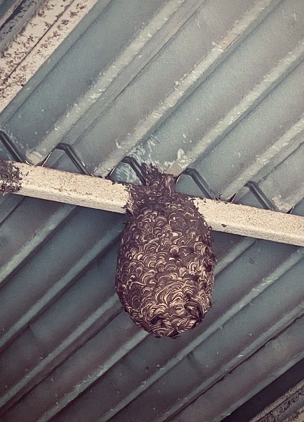 余談ですが、、、↓これは職場の軒下にできたスズメバチの巣。