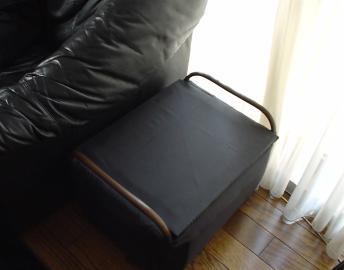 ちょうつがいを外して、ナイロンでくるんだんだけど、シワシワになるから中にスポンジを 入れてみました。これでまたしばらく使えそうです。 ただ、フタをあけるとホチキスだらけだけど(笑)。 |