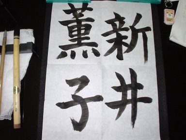 お風呂入ってご飯食べさせて、夜9時から習字を書くはめに。┐( -"-)┌ ヤレヤレ