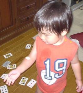 横で女小学生軍団がトランプで遊ぼうとすると、 「ああ〜〜!(わいも入れろや)」と混じりたがり、 当然ルールが分からないので、神経衰弱の場札を投げ飛ばします。