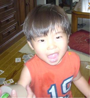 ガムテープを足に突っ込んではずす、腕に突っ込んではずす、 これを延々繰り返すだけ…。( ̄▽ ̄; そして、かめおは数字が大好きなので、今度はおもちゃの「せんせい」に数字を書いて じんこちゃんが「いーち、にーい、さーん、・・・」と数字を書きながら読み上げ 「さんじゅー!」って万歳すると、これまたかめおも一緒に数えながらキャッキャ喜んだんですが さあ、始まった、始まった、 2才児の 「100万回リピート要求」。 まあ、じんこちゃんはざっと1万くらいは数えたでしょうか、延々1から30までを 繰り返し、繰り返し、繰り返し、数えさせられてました(笑)。 今年のお正月に会った時は、まだまだ赤ちゃんだったのに、 いまや姉ちゃんたちのトランプゲームにオムツから横チンを見せながら 参加したがるまでに成長した子猿…、いや、かめお(笑)。 次に会うのはお正月。 さて、どんな変貌振りをおばちゃんたちに見せてくれるのでしょう。 じんこちゃん、大変お疲れさまでした(笑)。 カヨちゃん、お腹にかめおのキックが入らないように気を付けてネ〜(笑)。 ままごん、夜のプロレス、老体にムチ打って頑張ってね〜(笑)。 |