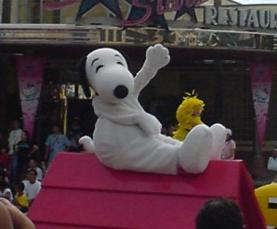 パレードにおけるスヌーピーです(笑)。 これ、中に入ってる人の下半身は赤い屋根の下にあるんだから スヌーピーの下半身をもっとこぶりに作ってあげればよかったのになぁ、と 細かいチェックをしてしまいました(笑)。 |