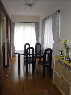| 2004.9.4 (土) 夜中から爆弾みたいな雷の音で、なんだか熟睡できなくて5時に起きちゃった。 当然雨なので草むしりは明日に延期なんだけど 全然ダラダラできなかったー。 なぜかというと、増築部分の内部のみ、急遽本日付で引渡しされることになって 大工さんとか、担当者が最後の仕上げをしに来てくれたんだわ。 この蒸し暑い中、汗だくになって、きれいにしてくれまして 無事に引渡しが終りました。外から見ると塗装も終ってないので不完全だけどね。 散らからないうちに新食堂の写真を撮りました。