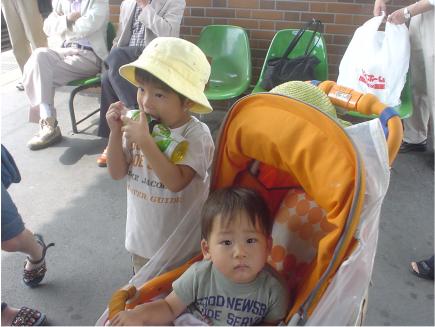| 2006.8.1 (水) 今日は、本当なら、カヨちゃんが里帰りしてるので 私の実家に集結する予定だったのですが せっかく夏休みで全員集まったので 茨城県在住の母方の祖母のお見舞いに行くことにしました。 茨城県は「な〜んだ、千葉県の真上にあるじゃん」って 思うんだけど、これがねー、電車はそうやって走ってなくて(笑)、 もんのすごい遠回りしないといけないのよ。 つーこととで、東京都・埼玉県経由で茨城県入りしました。 茨城に引っ越してからは、全然会えなくなっちゃってたから すっごく久しぶりに会って、話せて、すんごく懐かしかったー。(^−^) ままごんがじんこちゃんを指しながら 「ほら、おばあちゃん、これは誰?」って祖母に聞いたら 「じーんこちゃんだろ」 カヨちゃんを指しながら「じゃあ、こっちは誰?」 「カヨちゃんだろ」 そして私を指しながら「じゃあ、これは誰?」って聞いたら 「あー、えーっと、ほれ、なんだ、、、」 って、私の名前を思い出せなくてね(笑) そしたら、祖母が 「えーっと、ご本尊様?」 って(笑)。 あまりの茶髪ぶりに後光が差したように見えたのかな(≧∇≦)/ ハハハ というわけで、道中はカヨちゃんとこの甥っ子2人と一緒の珍道中(笑)。 ![]() かめお1号は今年の春から年少さん。 お喋りもしっかりしすぎるほどしっかりしてて とっさに「ちがいますよ」とか、敬語が飛び出てきて 思わずタラちゃんかと思ってしまうわ。(笑) そして、相変わらず人懐っこい、ぷにぷにの2号(笑)。 これだけの長距離の移動なのに、すんごいおりこうさんしてました。 よかった、よかった〜。 そうそう! 帰りの電車で上野から東京に向かう時 山手線に乗ろうとしたら 「只今、東京駅で山手線の線路内に人が立ち入ったもようで 現在、運転を見合わせております。」 って放送が入ったから 「工エエェェ(´゚д゚`)ェェエエ工、そんなら京浜東北線で行くか」って ホームに並んだの。 そしたら 「ただいま、京浜東北線も運転を見合わせております」 っていう放送があって じんこちゃんと「ったく〜、なんだよ。そんなら地下鉄で帰ったほうが よっぽどよかったじゃん」って話してる途中に ホームに京浜東北線が滑り込んできたの。 構内放送で 「運転を見合わせておりました京浜東北線は、 たった今運転を再開しました」 って(笑)。 んで、その電車に乗ったら、しばらくノロノロ運転して途中で止まっちゃったのよ。 車内アナウンスで 「えー、京浜東北線の前の電車、たった今、車両に異常があったため 運転を見合わせております。」と。 その横を最初に乗ろうとした山手線がついーっと抜かして行ったのよ。 じんこちゃんと「ちくしょー、アレに乗ってれば線路上で止まる事もなかったのに」 と言ってたら、ほんの数分で 「えー、とりあえず、この列車は次の御徒町駅までは行きます。 そのあとはしばらく停車いたしますので、お乗換えくださいますようお願いします」 って。 だから、「じゃあ、御徒町で当初の予定通り山手線に乗り換えよう」 って、電車を降りようとした瞬間 「えー、前の列車を点検したところ、大丈夫だったので このままこの列車は運行を続けます」って もうこの瞬間 私とじんこちゃん 「ったく、どっちなんだよう!」 と、怒ってしまいまいした(笑)。 しかも「点検します」って言いながら、たった数分で「大丈夫でした」って ホントに大丈夫だったのかぁーー?! |