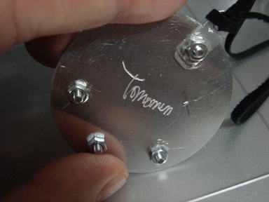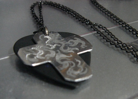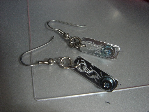 | 2009.6.22 (月) 長女のお友達の高校の文化祭に行ってきました。 去年、長女の高校にも行ったんだけど やっぱ、、、いいね、、、、高校生ってさ(笑)。 先週末に、脱衣所に棚を作ろうと思って ホームセンターに行ったんだけどね そこでふとアルミ板に目が行って、 「これでアクセサリーを作れないだろうか?」と 棚作りを延期して(笑)、急遽アクセ作りに変更。 アルミでアクセなんて、全くの思いつきだし 本を見たわけでも、人から話を聞いたわけでもなんでもない 全くの自己流なので、うまくいくかどうか保障はナシ。 とりあえず金物用ののこぎりとヤスリを買ってきた。 ![]() ずっと欲しくてアクセショップを探していた のっぺりしたクロスモチーフを作ってみようと思い、 早速チャレンジ。ルーターで柄を掘り込んだのも思いつき(笑)。 失敗を繰り返し、思い通りのモノがやっと完成。 最初ね、ピックペンダントを作ってたんだけど ピックだけだと軽いなぁ、と思っていたのね。 で、クロスもアルミだから軽いなぁ、ということで ふたつを一緒につけてみたら、これがいい感じ。 大きさは適当に作ったわりには、偶然ピックと同じくらいの大きさになった。 そして、こちらが大作(笑)↓ すごい時間が掛かった。手間がかかった。 裏にはサインを入れてみた。 どっかのブランドみたいでしょ?(笑) そしてさっき作ったのがピアス。 ってかね、時間がなくて忙しい時に限って アイディアがむくむくと湧いてくるのはなんでだろうね?(笑) こんなものを作ってるせいで、いろんなことが後回しに(^^; 明日はちゃんとやらなきゃいけないことをやろう。(笑) |