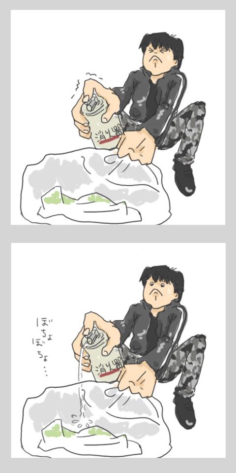 | 2012.12.15 (土) 今年一番の出来事のあった11月分の日記もアップしたので、 よかったらそちらも見てくださいねー! ってか、11月分は是非見て欲しいです! ってか、それなら早くアップしろよー、ですな。(≧∇≦)ノハハハ 12月5日 (水) 実家に行ってきました。 ままごんに頼まれた家の仕事あれこれを片付けるためです。 金沢以来だったので、まあ2人で喋る喋る喋る(笑)。 90%が旅行の話でした。 そして、頼まれていた家の仕事のうちの一つが 使用期限が切れた簡易型消火器の処分。 事前にままごんがメーカーに処分方法を問い合わせたところ 「中身は普通の消火器と同じく消化剤が入ってるので 古いバスタオル等に噴射して中身を空にして捨ててください」とのこと。 「普通の消火器と同じ???」 以前、自治会の交通防災部長をやった時に 防災訓練で消火器を実際に使って消火作業をしたことあるけど それはそれはもんんんんんのすごい勢いで消化剤が噴出し、 見る見る間にグランドが真っ白になり、あたりの空気も真っ白になって 大変なことになったぞ・・・ってことはこれは大変な作業になるかも・・・。 と、自分自身が真っ白になるのを覚悟して、 簡易型消火器と、ゴミ袋に古いバスタオルを入れて、 いざ、裏の公園へ。。。 説明文を読むと 「安全ピンを抜いて、プッシュボタンを押し込んでください。 勢いよく中身が噴出しますので気をつけてください」と書いてある。 「こりゃ大変だ!!でもさっさとやっちゃおう」と 安全ピンを抜き、ドキドキしながら ゴミ袋に入れたバスタオルめがけて、プッシュボタンを ぐいっと押し込みました! ぐいっと押し込みました!! ぐいっと押し込みました!!!! ![]() ・・・すると、なんということでしょう。 古くなった消火器はガスがすっかり抜け、 液体だけが「朝一の勢いのないおしっこ」のように じょぼじょぼじょぼじょぼ・・・ と、寂しげにバスタオルに流れ出てきました。。。 雨の降る中、怪しい黒尽くめな人が スプレー缶持って何してんだか・・・ 危うく通報されそうでしたがな・・・(笑) しかし、かなりスリリングな出来事でした。 この日の帰り、改築中の千葉駅で外房線を待っている時に 昔よく行った、駅構内のパン屋さんだった場所を発見(笑)。 ![]() ナンバリングしてある柱の向こう側です。 ここはパン屋さんであり、しかもセルフサービスで軽食が食べられる(アルコールも) とっても便利なお店で、時間をつぶすのにとっても活用してました。 パンも美味しかったからよく買って帰ったんだよなぁー。 新しくなったら、また入って欲しいな。 12月6日(木) 家も四半世紀経って、もうあちこちがボロボロ・・・。 しかも、今は学費に一番お金がかかる時期で 家のメンテなんぞにお金をかけていられない時期なのです。 ということで、セルフリフォームしました。 トイレの壁は、目に見えないアンモニアが飛び散って それが長い月日が経って、茶色いシミになってました。 それを隠すのに何かいいものはないかと、ホームセンターをウロウロ。 以前、「壁紙の上に貼れる壁紙」というのでリフォームしたんだけど 細かいトイレットペーパーの粉が舞って、壁紙の合間のぼこぼこした隙間に入り込み はがれてきちゃったので、固いもので何か代用できないか、、、と思っていたら いいものを発見。 それはダンボールのような仕組みで作られた プラスティックの薄い板。 いろんなサイズがあったのですが、購入したのは200cm角のもので 一枚198円。安すぎる(笑)。 ![]() どうでしょう(笑)。 いい感じでカバーできました。しかも防汚効果もあります。 一番苦労したのは、トイペホルダーや水道管のある場所に穴をあける事。 これがちゃんっと測ってもびみょ〜にずれてしまい、大変でした。 12月12日 (水) この日は海にロケに行ってきました。 この海は家から車で30分くらいの九十九里のビーチです。 子どもが小さい頃は毎年夏に海水浴に来てましたが、 冬に来たのは初めて。 夏は、人でごった返していて ここに海の家がずら〜っと10軒以上並んで、 駐車場はもちろん有料で、遠くに止めさせられます(笑)。 それがなんということでしょう(笑)。 こんなに冬の海がガラガラで綺麗だとは。。。 ビックリしました。 遠くにサーファーが何人かいて、 ふらりと立ち寄った人、犬の散歩に来てる人くらいしか人がいません。 ![]() ここでビデオカメラを三脚に設置して、海をバックに歌のシーンを撮影。 ええ、おもいっきり声を出しながら歌っちゃいました(笑)。 時折おじさんが、こちらをじぃーーーーーーっと見ながら歩いてました。 しかし、、、こうやって昔は子どもと一緒に来たスポットに一人で来ると むっしょーーーーーに懐かしい気持ちと寂しい気持ちになります。 なんだか人生ってあっと言うj間ですね。(笑) 12月15日 (土) でもって、最近描いたイラストをついでにアップしちゃいます。 各コンテンツのとびらにしようかな〜♪ ここから下3つまでは、同じ柄で色