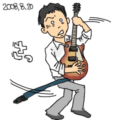 何かと思ったら、最短になっていたストラップの長さを確認せず、借りたままの状態でレスポールを担ごうとして、ギターのボディを顔に思いっきり当てた らしい。