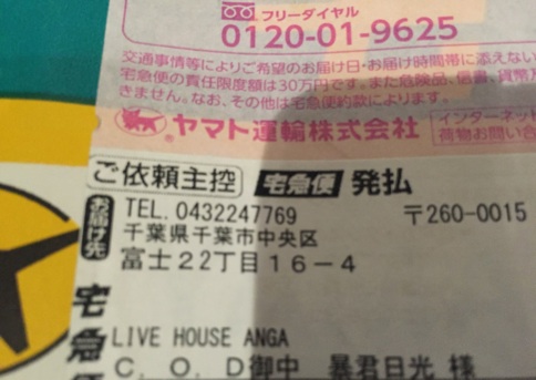 ライブハウスに持つが届くなんて、たいていは自分が送った機材くらいでは