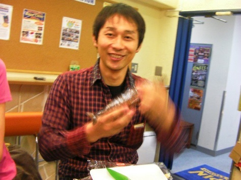 「はい、こういうの(←リーダーがあばれる魚を持ってるところをゼスチャーで伝える)をやって〜」と、写真におさめようとスマホを構えたのだが、