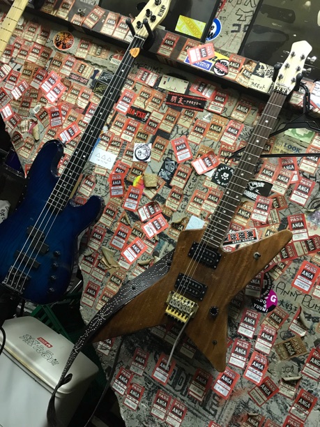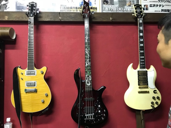 と、壁にかかってる3本のギターの写真を撮ろうとした時に