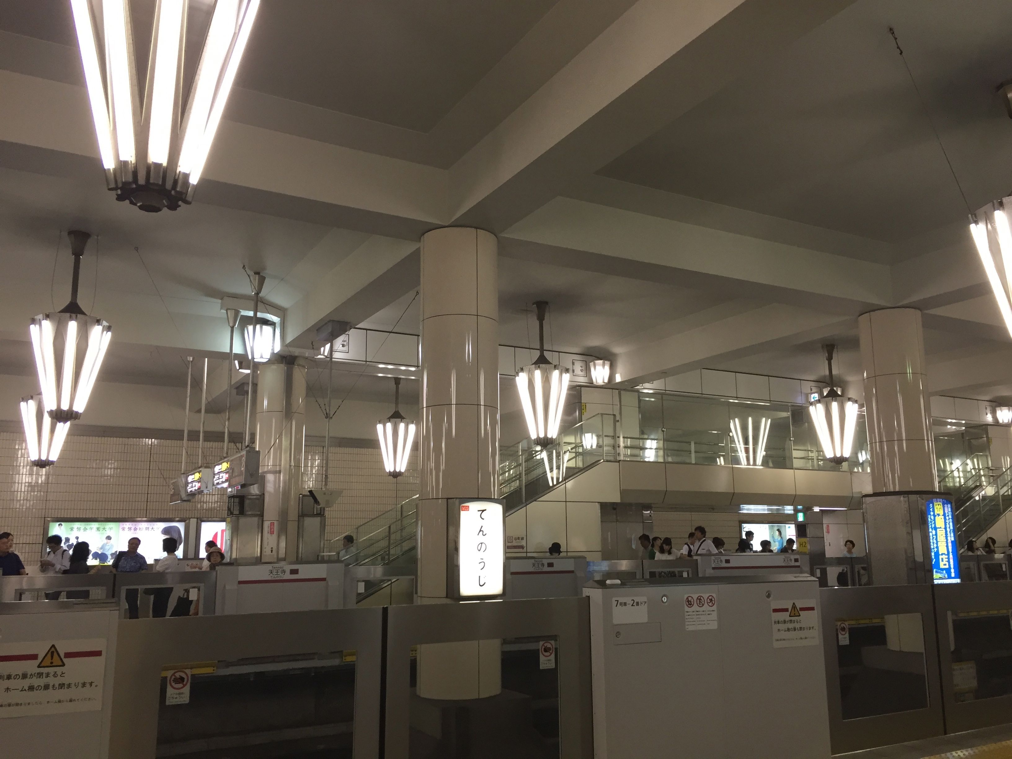 地下鉄御堂筋線の天王寺駅の照明がオサレ。